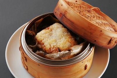 味がしっかりしみ込んだ具だくさんはもちろんのこと、蓮の葉の脂肪代謝促進・血管循環促進の効果を芳ばしい香りとともにもち米にとじ込めた、「ホクホク」とした、おこわです.